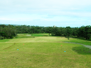 さて、スタートしてすぐはショットの調子が悪かった、1番もティーショット4番アイアンで芯喰わず、2打目もやや芝噛み気味、、、しかもバンカーへイン!そのバンカーショットが出たけどグリーンの傾斜を転がってクリークへ!!幸いにも水の無い場所に落ちたので、そのままハザード内から打って4オンで1パットのどうにかボギーでスタート。(写真は1番ホールのティーグランドからの景色ね)